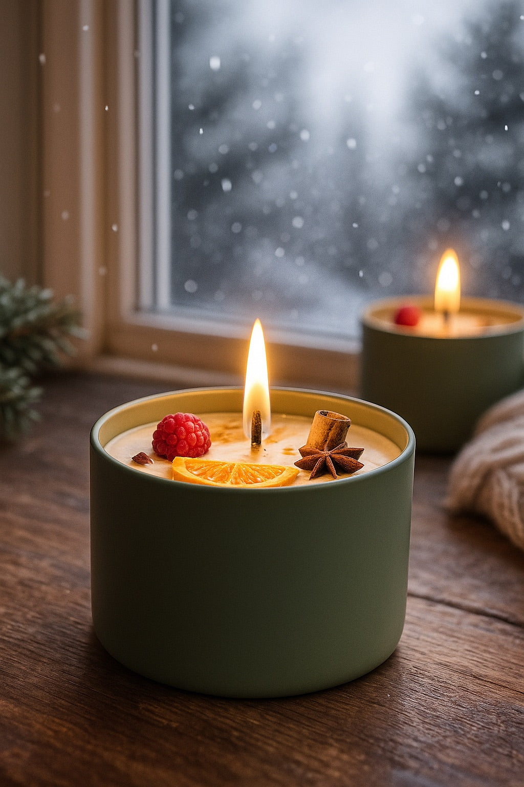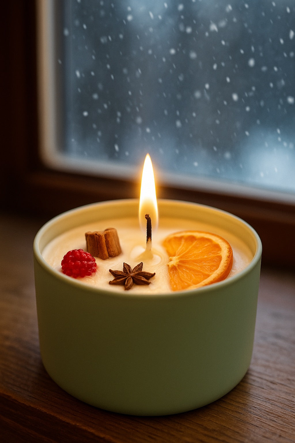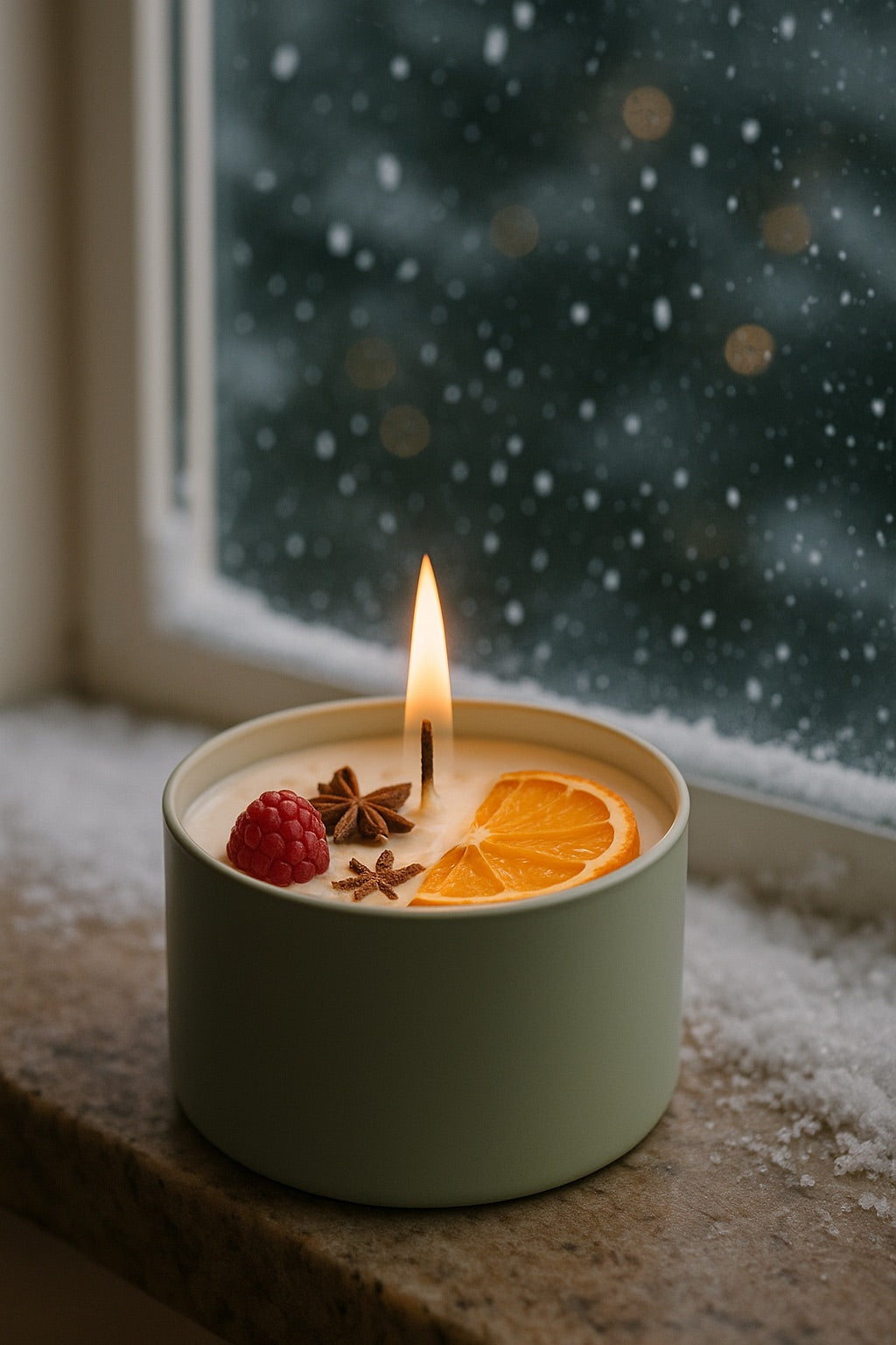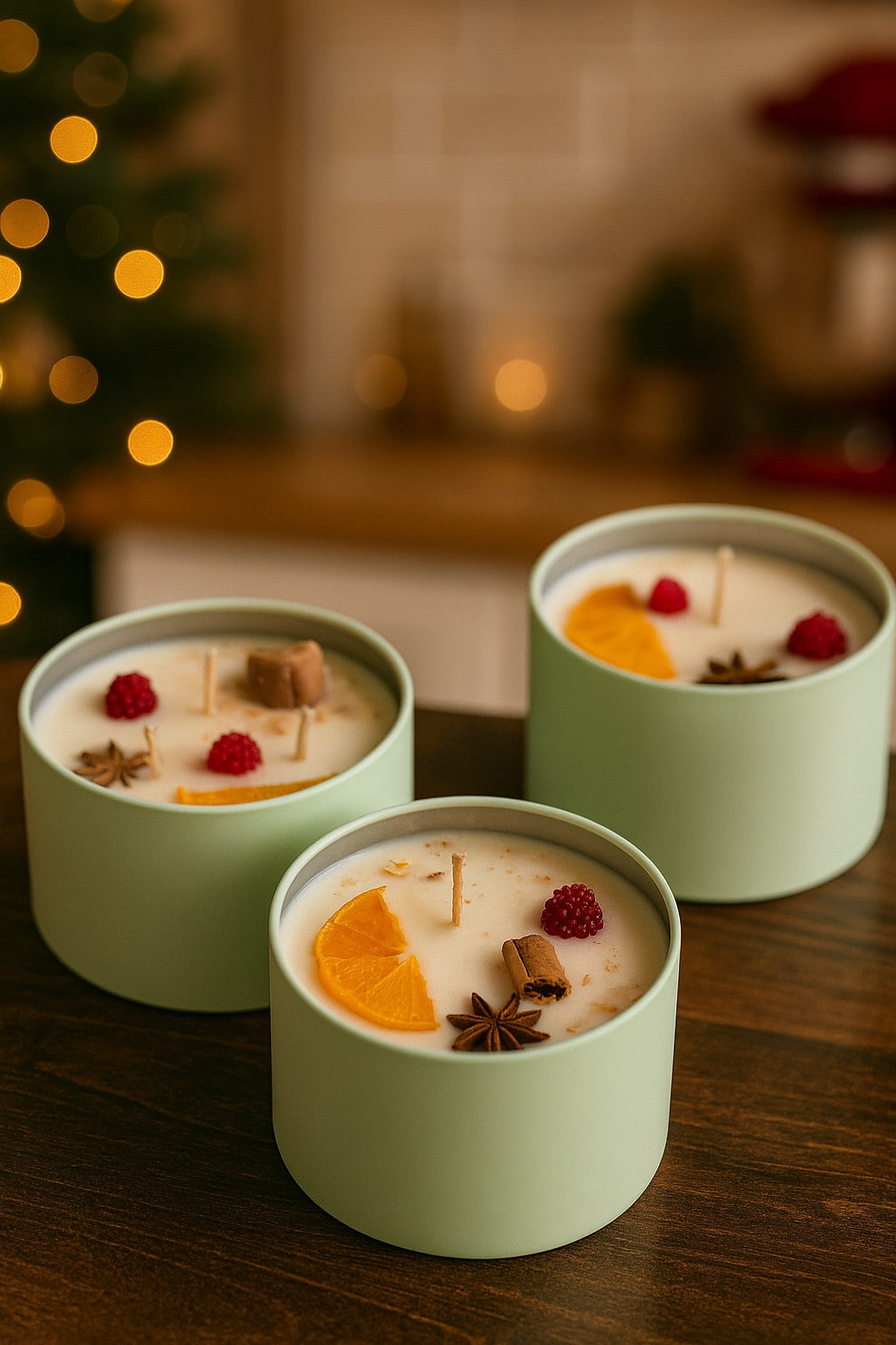 A cozy winter simmer pot in candle form — bright orange pomander, warm clove and cinnamon, and soft vanilla meet festive Christmas Hearth notes of fir, pine, and a subtle smoky glow.